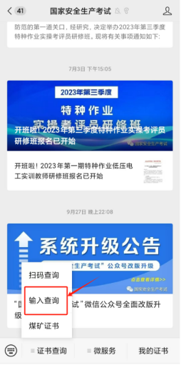 步驟 2:點(diǎn)擊左下角“證書查詢”,選擇“掃碼查詢”或“輸入查詢”。